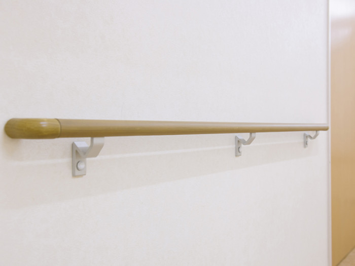 階段の手すりは両側に設置するのが理想ですが、片側にしかつけられない場合は、降りるときの利き手側に設置しましょう。また、手すりを設置するにあたって、壁の強度を確かめ、必要があれば補強することで、安全に手すりをご利用いただける環境をつくります。